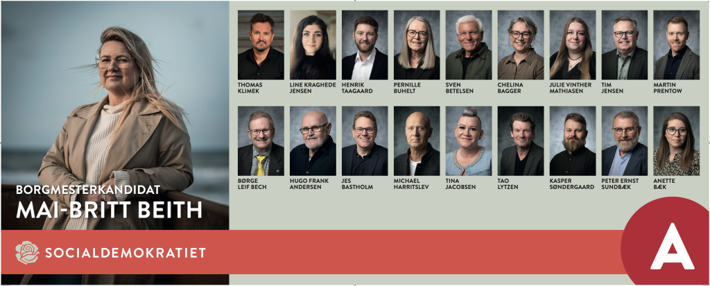 Mai-Britt Beith er Socialdemokratiets borgmesterkandidat i Hjørring Kommune. Hun er født og opvokset i Hjørring, uddannet økonom og arbejder som kontorchef i Forsvaret. Siden 2014 har hun været byrådsmedlem og har gennem hele sit liv været engageret i foreningslivet og frivilligt arbejde.